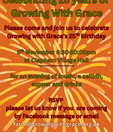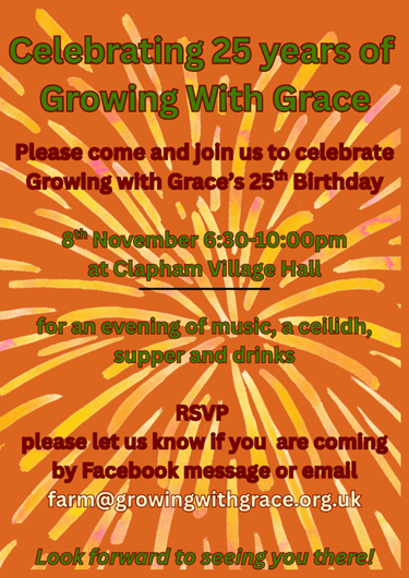 If you would like to attend, please RSVP by emailing farm@growingwithgrace.org.uk so we can make sure all are catered for.